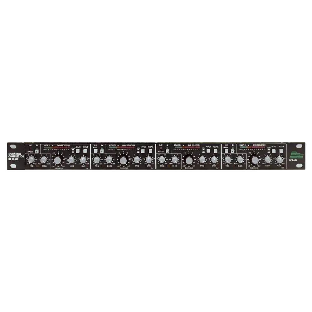 The BSS DPR404 is a quad compressor, offering four channels of high-quality compression in a single unit. Perfect for both live and studio applications, it provides precise control over dynamics, ensuring your audio remains consistent and well-balanced.