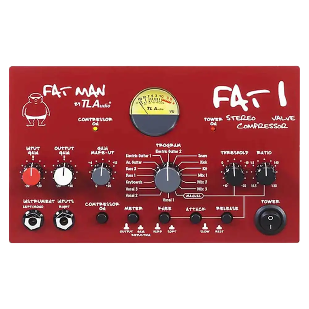 The TLaudio FAT1 is a versatile tube compressor, perfect for adding warmth and character to your recordings. Ideal for vocals and instruments, this unit delivers smooth, musical compression. Its tube circuitry ensures a rich, warm sound that enhances the tonal quality of any audio signal, making it a valuable addition to any professional studio.